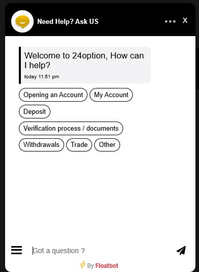 24option seems to have quite a few options when it comes to their support functions. Perhaps the easiest way to get hold of them is through their online chat function. This operates 24/5 and has a pretty quick response time.