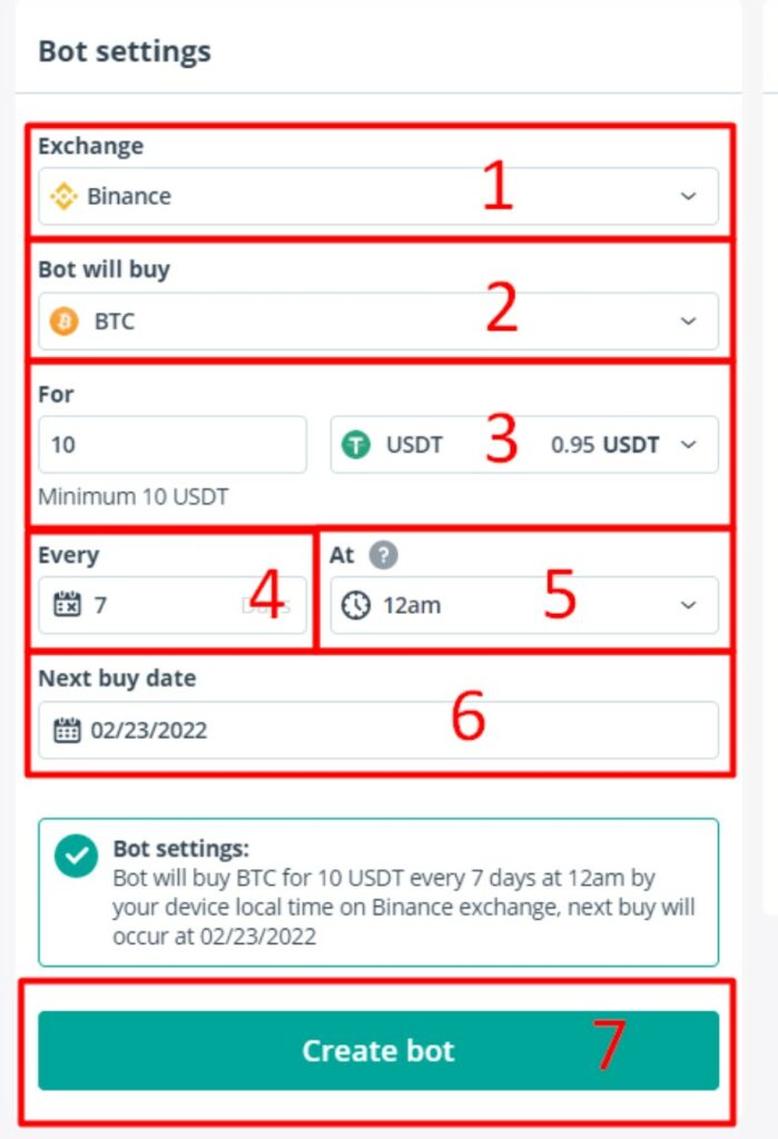 - Choose the day when the bot will make its first purchase