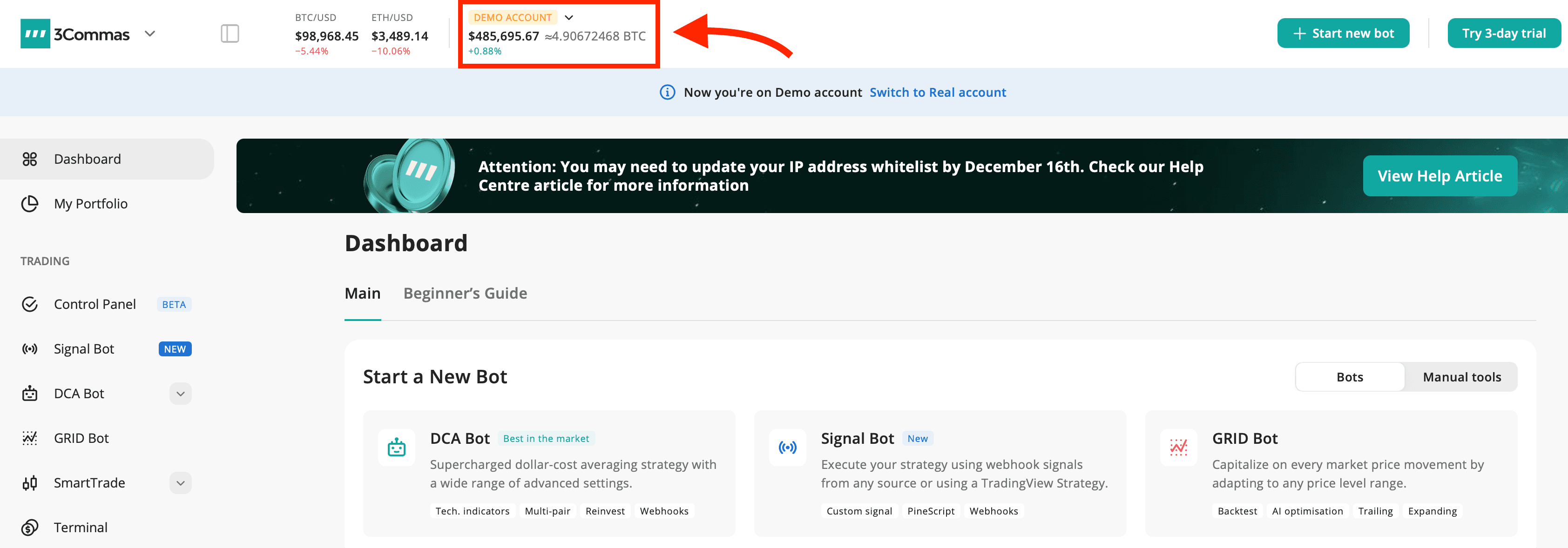 3Commas DashboardAutomated Trading and Trading Bots