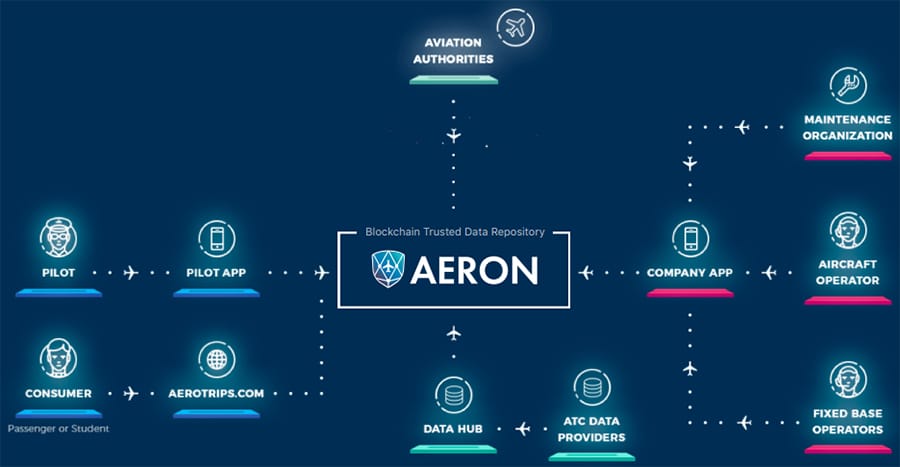 More specifically, Aeron is developing a protocol that will keep records essential aviation logs and data on the blockchain. This will be kept updated in real time and be easily accessible to all parties from pilots to ATC controllers and airlines. It will also be immutable which means no chance of tampering.