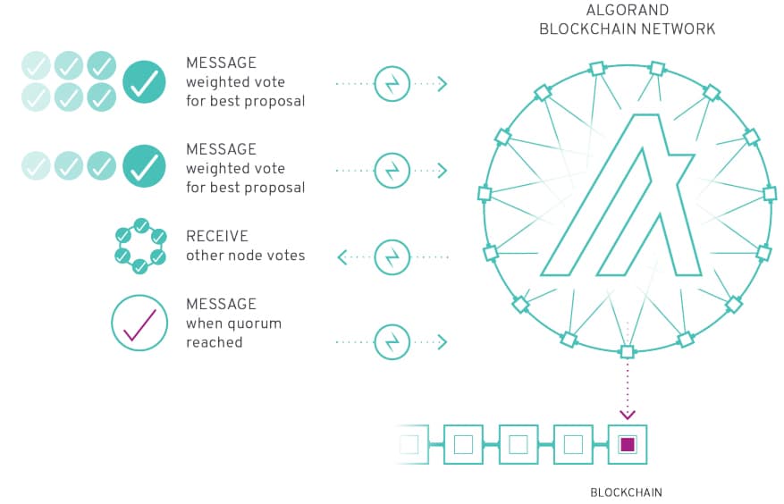 Overview of the Algorand consensus Mechanism. Image via AlgorandIf you have an honest leader proposing a block the first vote occurs immediately when network participants receive the block. This means once the block propagates through all the participating nodes it is approved after just one round of voting.