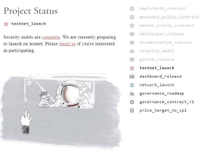 Ampleforth does not have a clearly defined roadmap. Although Ampleforth’s profile on ICOdrops contains an image of a roadmap, this image does not seem to be anywhere on Ampleforth’s website, Ampleforth’s Medium, nor on Ampltalk, its economics web forum.