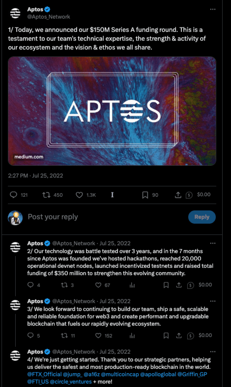 However, it is also worth noting that the project has fallen under intense scrutiny in the industry, with many crypto enthusiasts feeling that Aptos is nothing more than a “VC hype project" only aiming to make money and pad the bank accounts of founders and investors. The Silicon Valley origins and early investment rounds lend some credibility to these opinions, but it is up to each user to decide for themselves if this blockchain with origins dating back to Facebook is authentic or simply a way to make money.