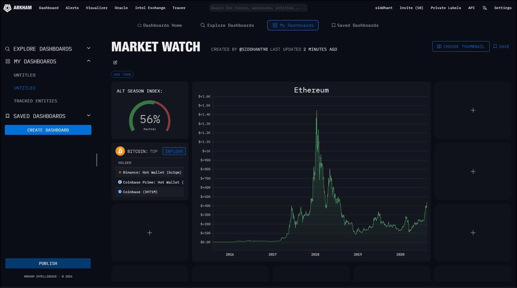 Financial markets are where investors employ a myriad of strategies involving different narratives, metrics, data, and investment goals. So, customizability is the key to designing an effective analysis platform that appeals to as many people as possible. Dashboards are one such customizable tool in Arkham.