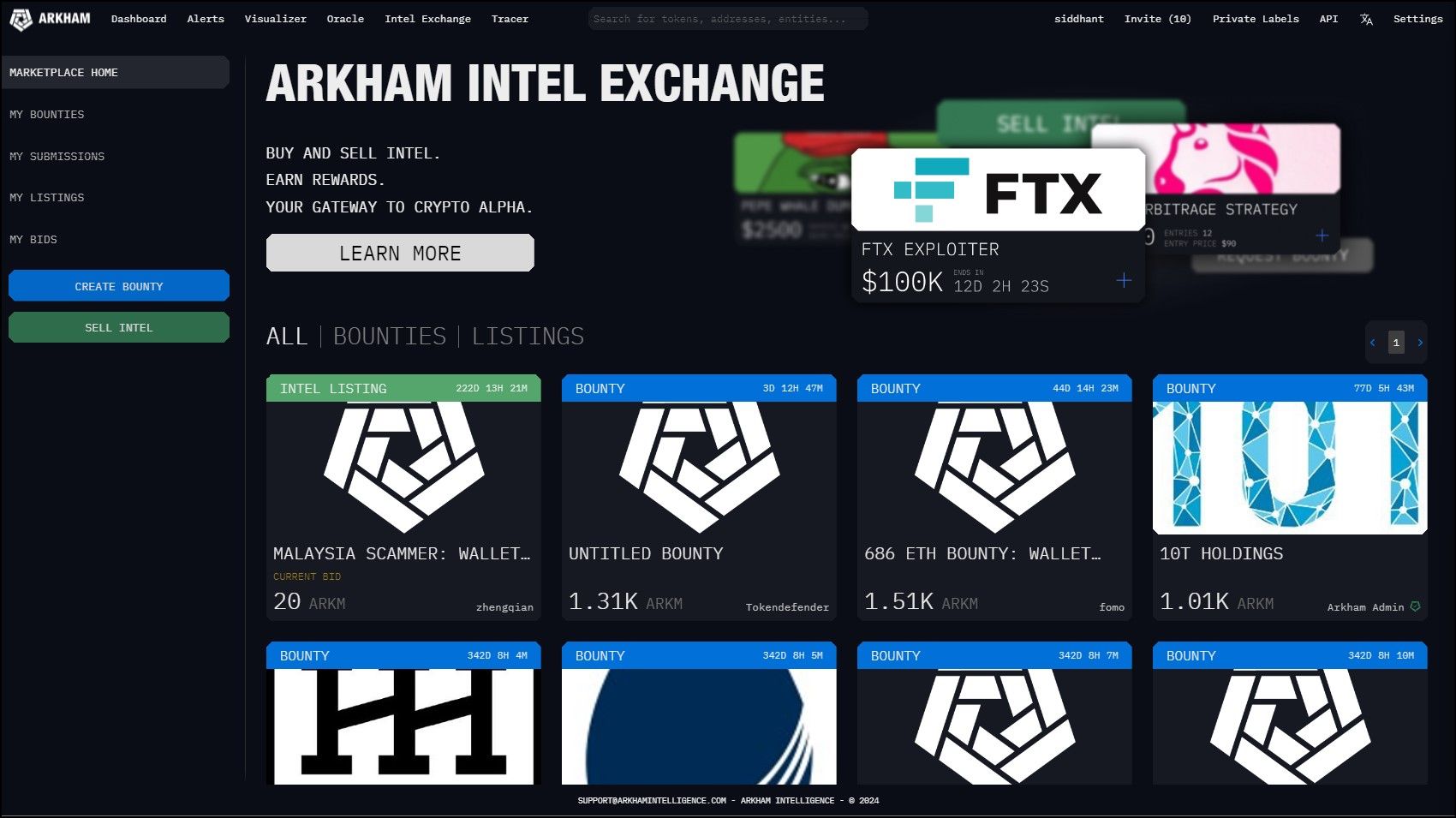 Put simply, the Intel Exchange commodifies information. Users with information can sell it to buyers for ARKM, Arkham’s native cryptocurrency. The Intel Exchange incentivizes intel capture and sharing, creating an economy for information.