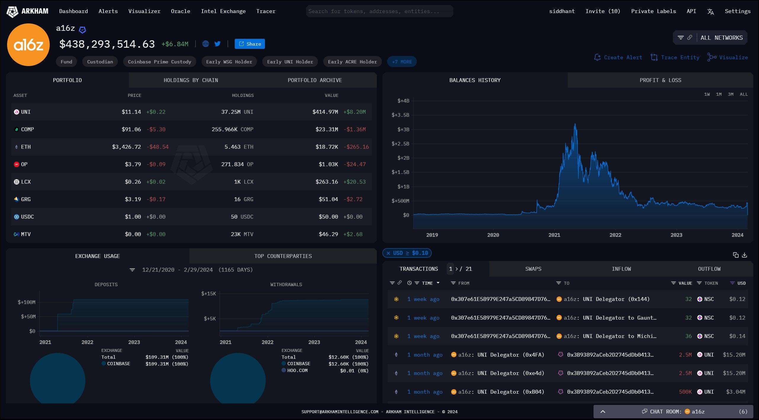 a16z’s Profile on Arkham IntelligenceThe Profiles are arranged in five tiles: