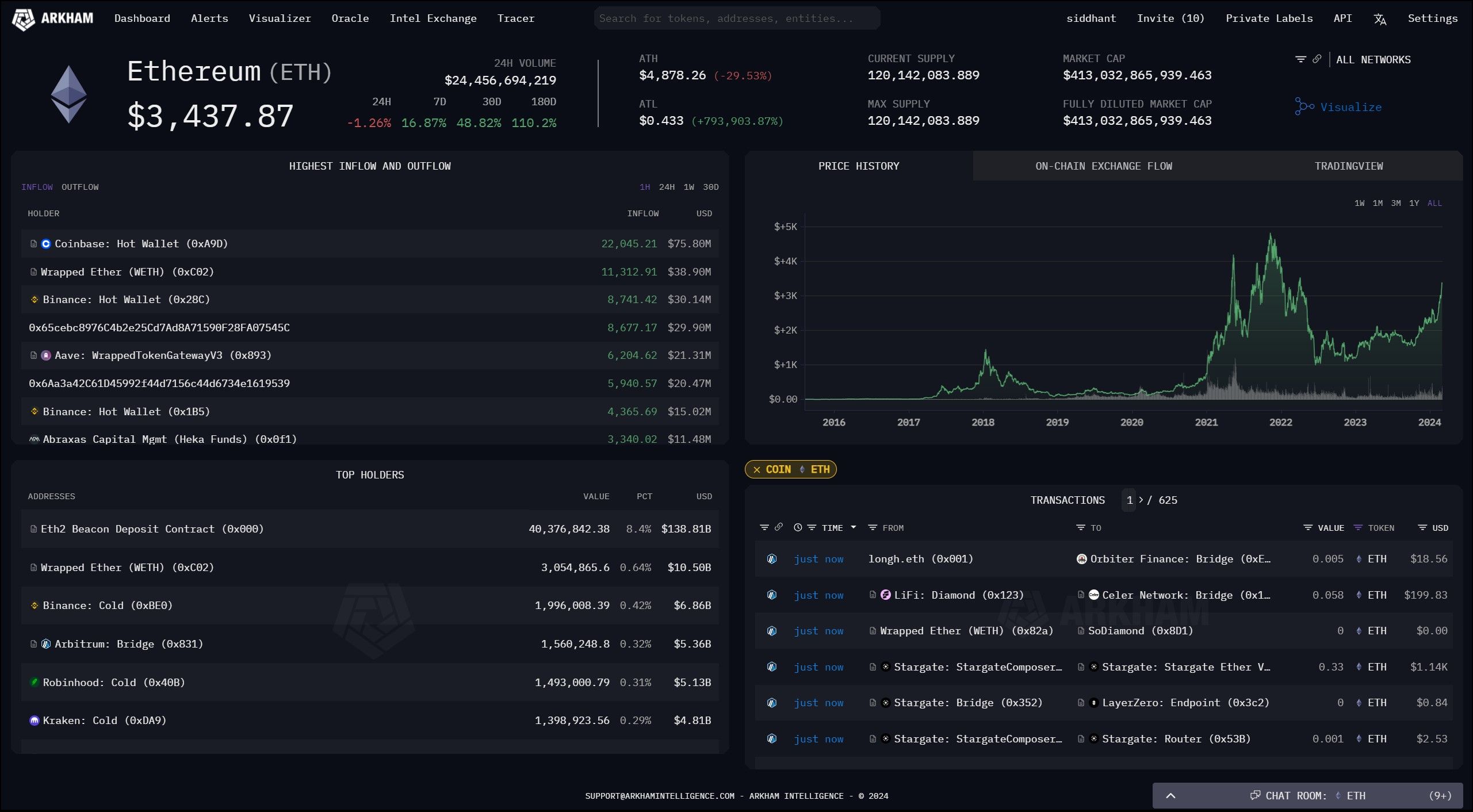 Seasoned traders will love this feature because, through these dashboards, Arkham has solved the problem of having to reference many metrics from various sources by bringing them together in one place.