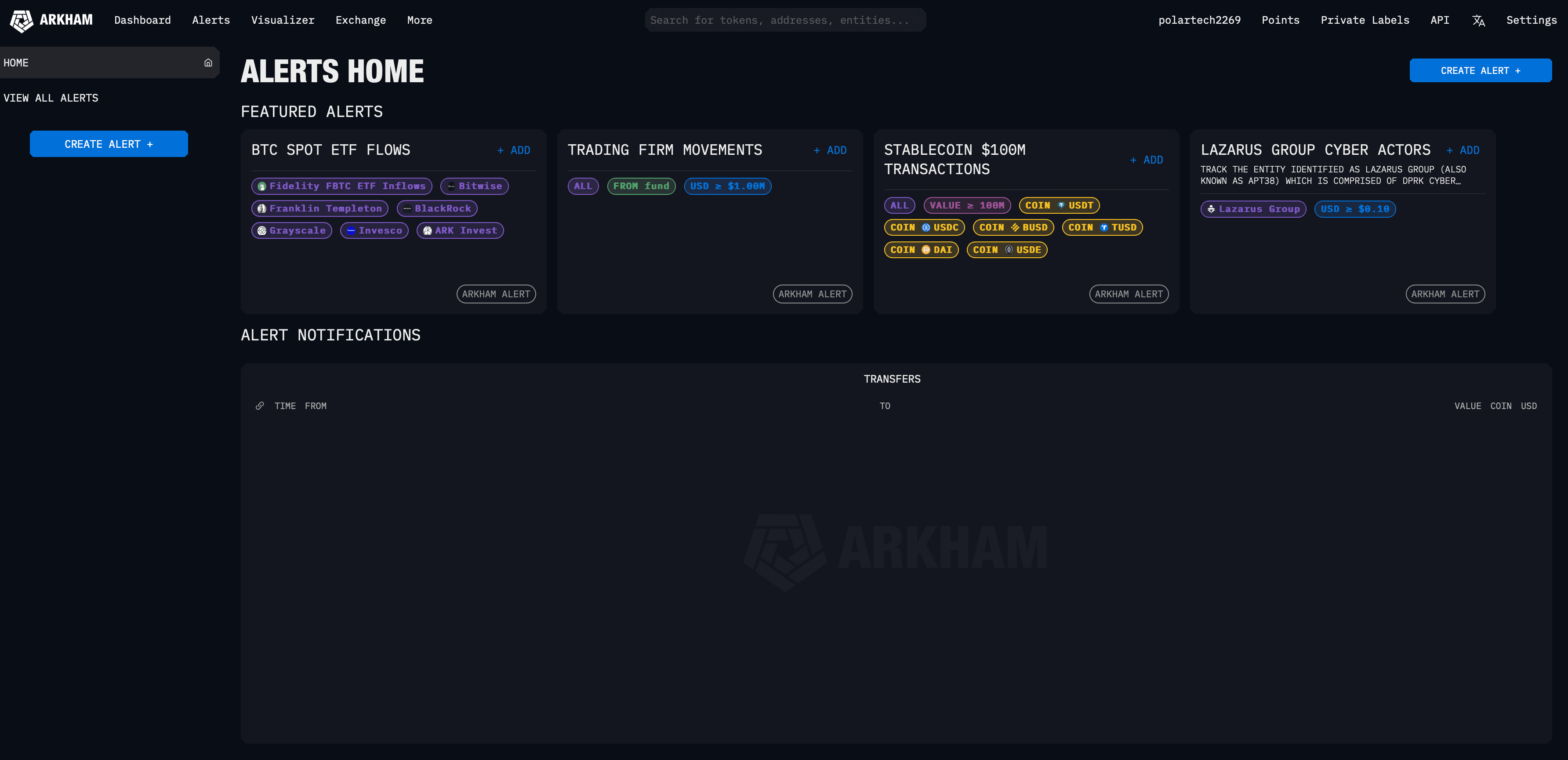 Arkham Block ExplorerAlerter: Set instant alerts for anyone’s activity.