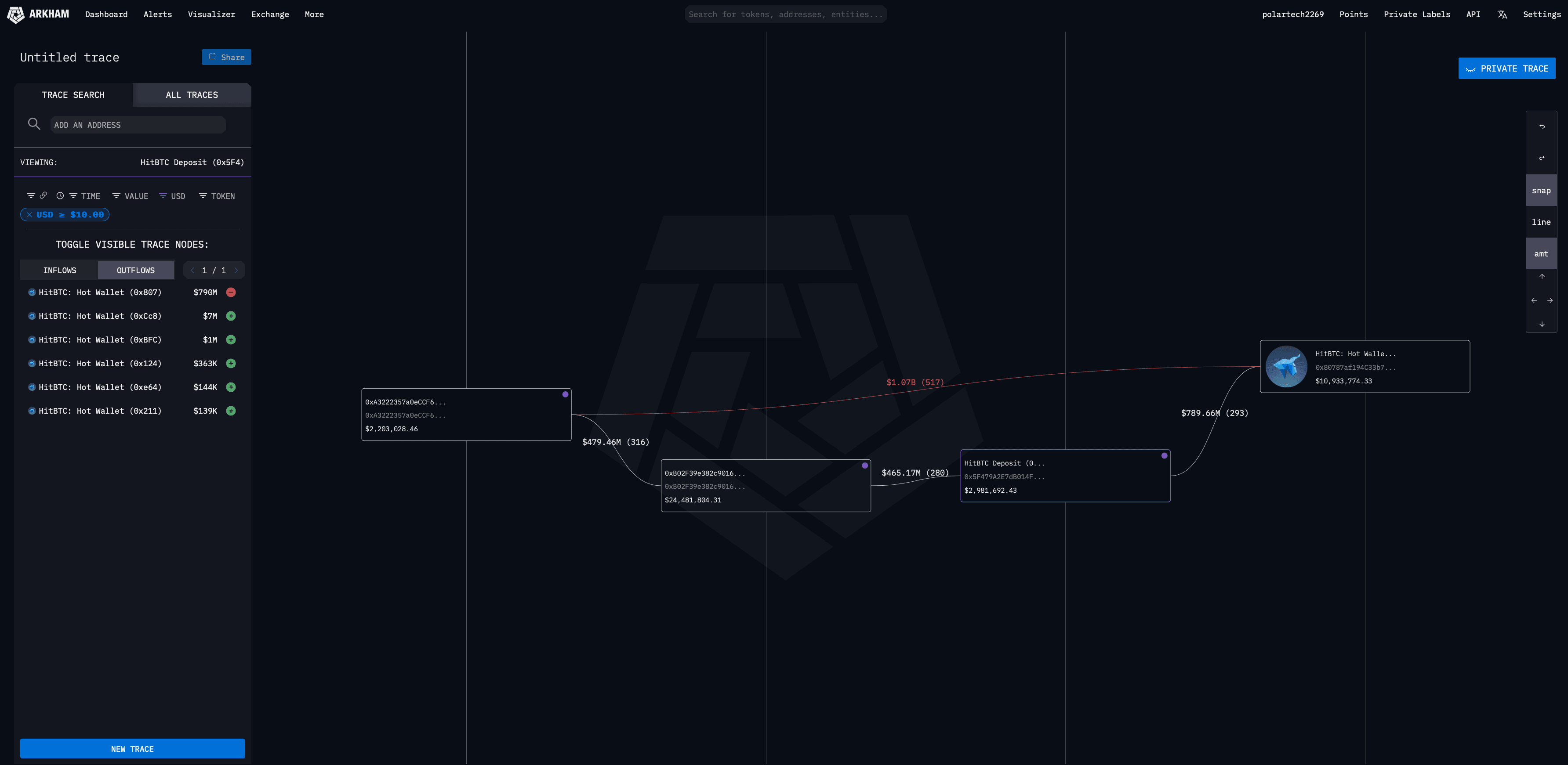 Arkham carefully designs profile pages by deciding what information to show and what to abstract away so that users can intuitively analyze the characteristics they care about without friction. Arkham simplifies following the trail of money.