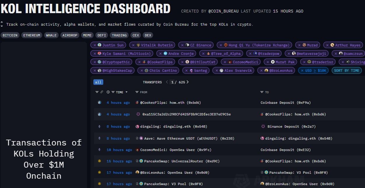 The Coin Bureau has launched the KOL Intelligence Dashboard on Arkham. Get instant insights into smart money flows across Bitcoin, DeFi, memecoins, and more.