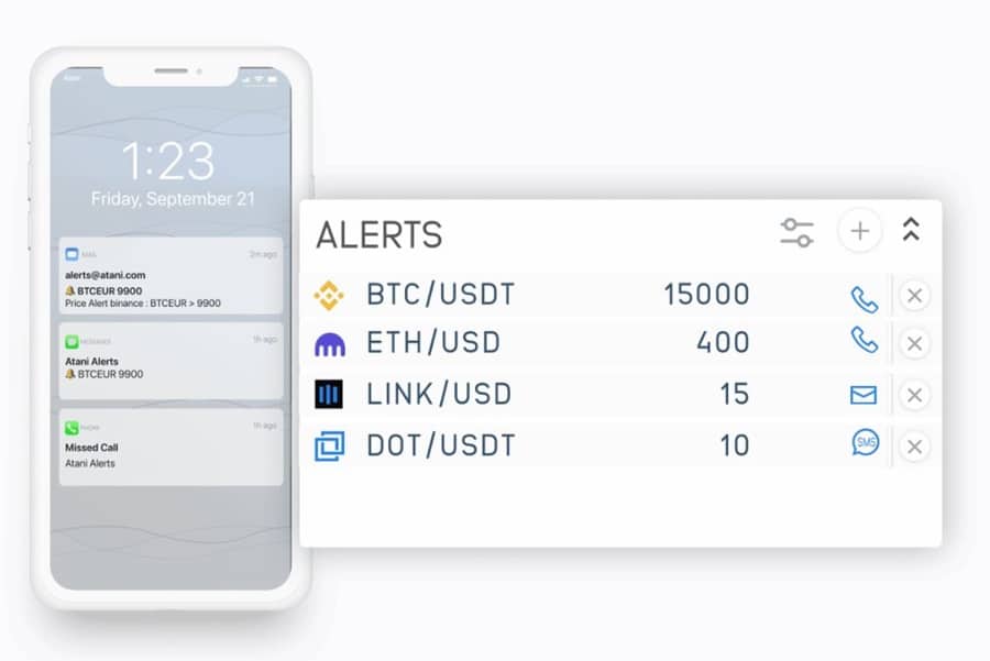 Atani allows you to set price alerts for every one of the supported 9,000+ trading pairs across every one of the 20+ supported exchanges.