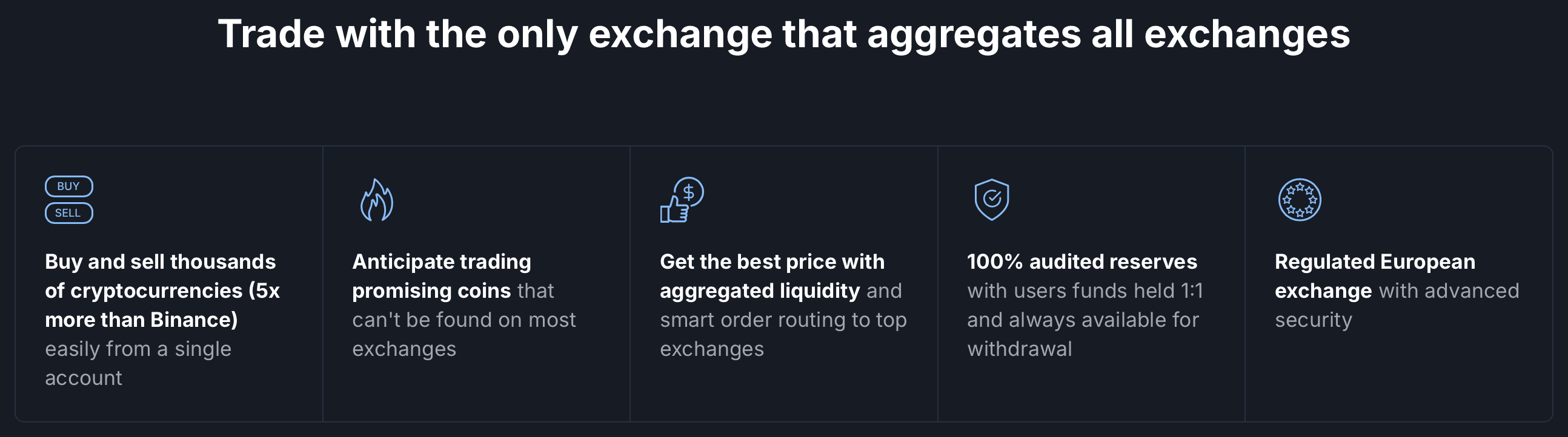 - Unified trading terminal supporting 20+ exchanges, 1,500 cryptocurrencies, and 9,000+ trading pairs.