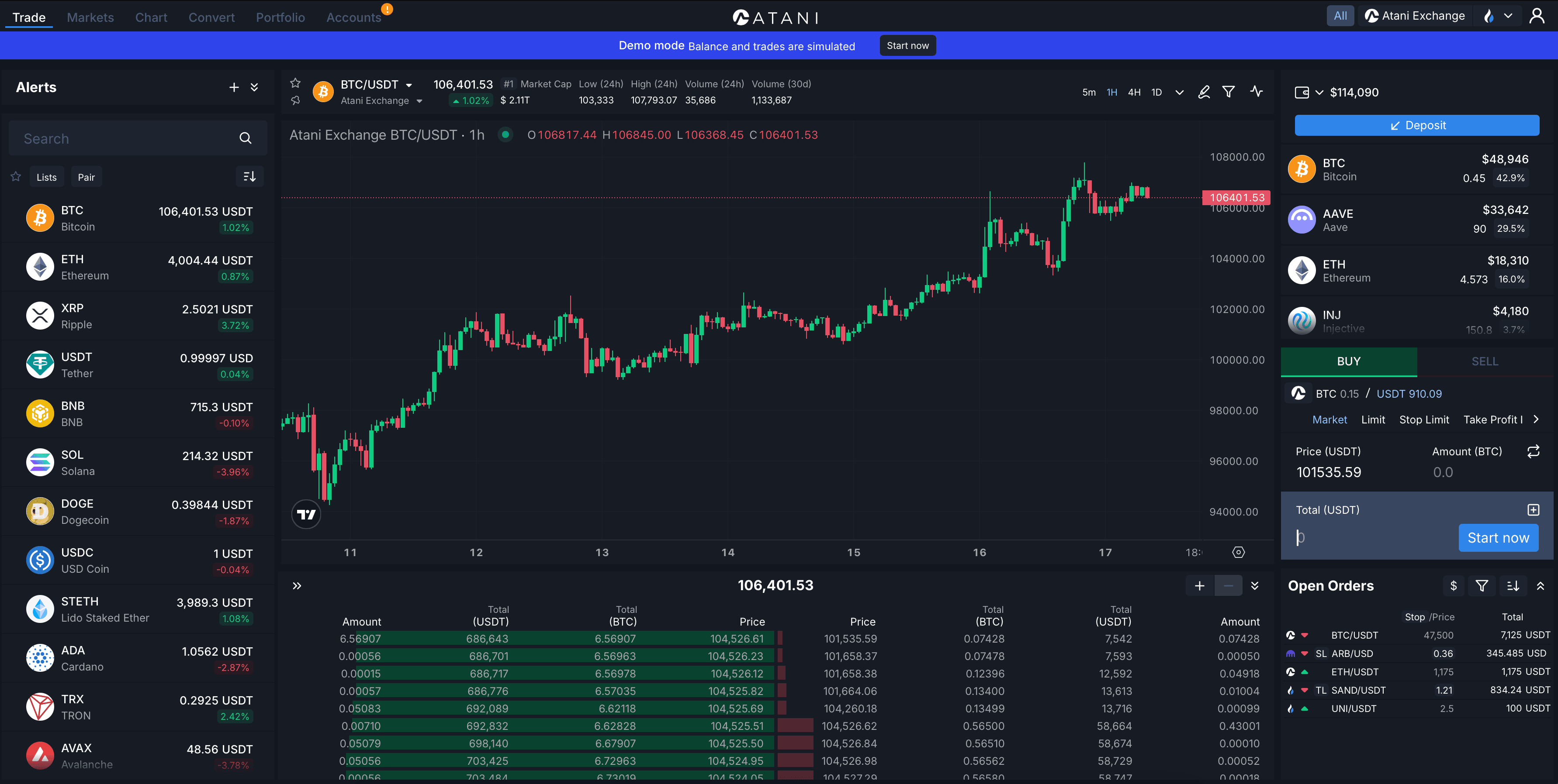 User Interface of the Atani Platform. Image via Atani - Real-time order books with 100ms latency.