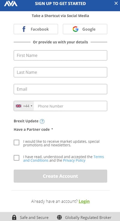 Register to start trading. Image via Avatrade.com It is worth noting here that AvaTrade does not accept residents of the United States as clients at this time.
