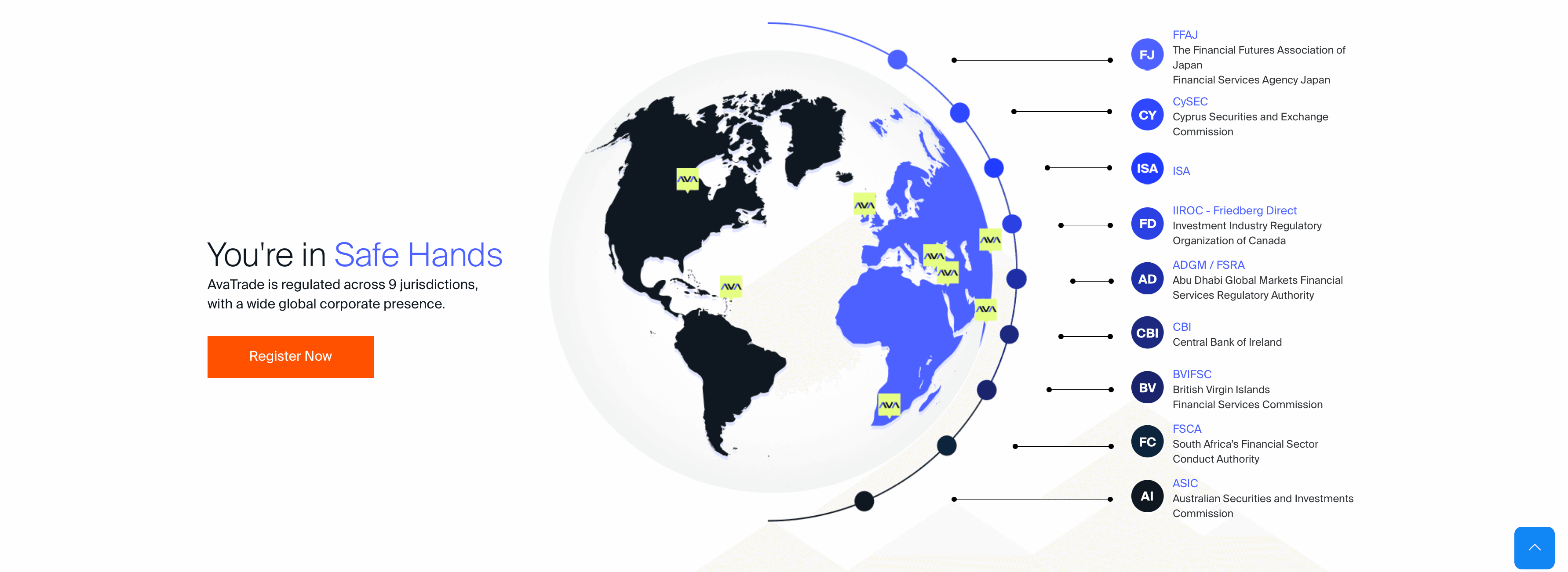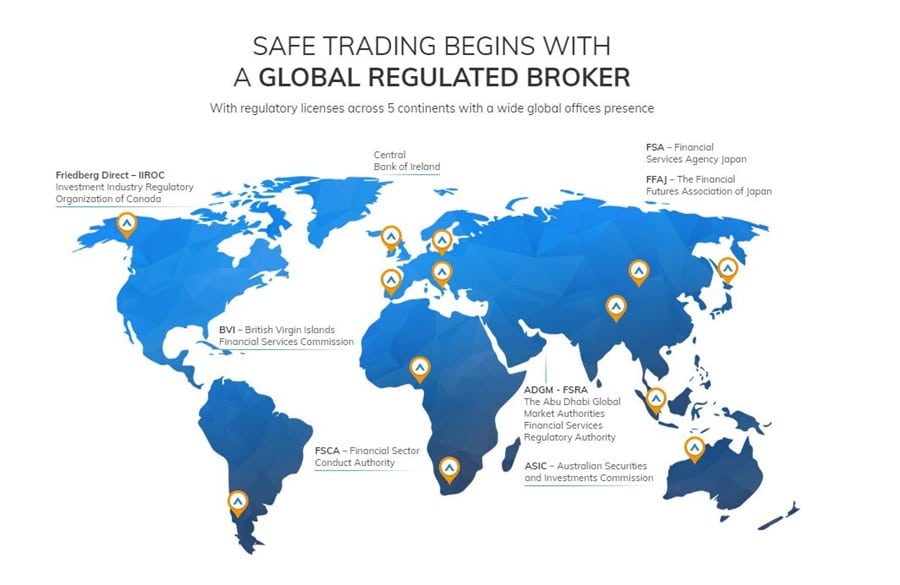 Regulated in six major global jurisdictions. Image via Avatrade.com Thus AvaTrade is based in the European Union through its corporate structure in Ireland, as well as Australia, Japan, South Africa, Abu Dhabi, and the British Virgin Islands.