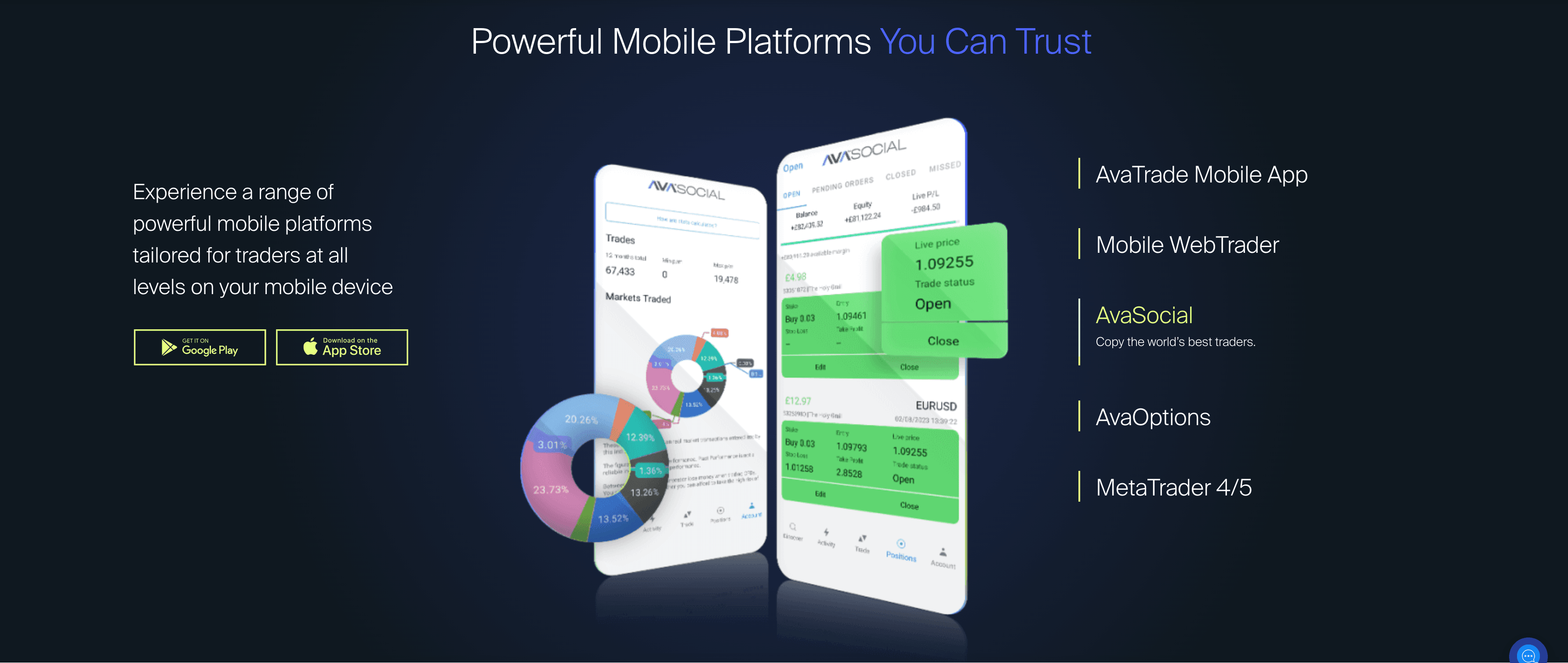 This is the primary social trading app offered by AvaTrade, which allows anyone to connect with other traders to see how the market is moving. AvaSocial can help beginners to develop a trading strategy based on what works for others, and it can help experienced traders discover new trading strategies, or simply diversify their trading by expanding to assets they wouldn’t usually trade.