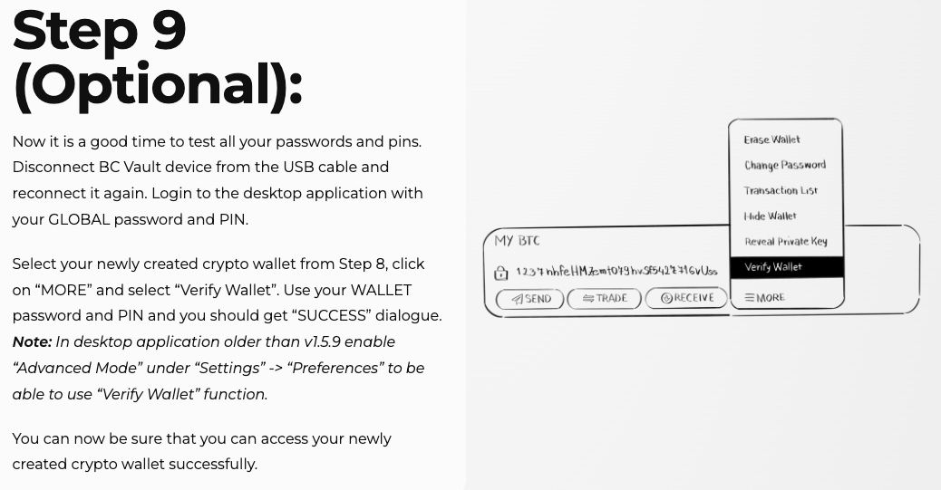 Pro-Tip: BC Vault allows you to verify your passwords and pins by hitting the “verify wallet” selection, which is a FANTASTIC feature.