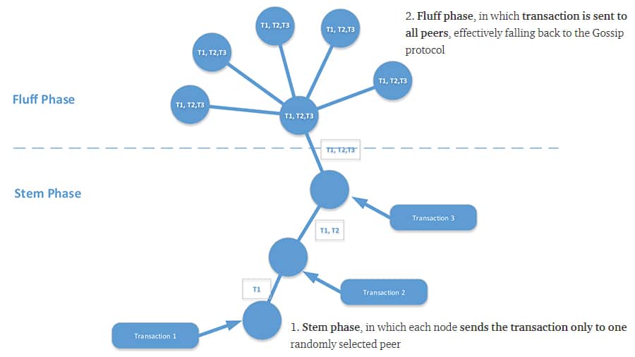 Graphical Represenation of the Dandelion Protocol. Image SourceTo add even better privacy protections, Beam has implemented the Dandelion Protocol too. You can also find this privacy protection implemented in such blockchains as ZCoin, where it is used to lower the probability that personal data can be linked to addresses and transactions. The Dandelion Protocol allows Beam to support dummy inputs and outputs.
