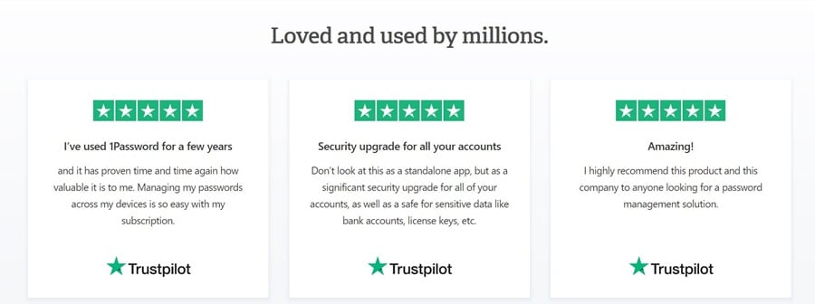 Loads of love for the 1Password tool. Image via 1Password.com1Password has plenty of positive features. It’s simple to use, and you’re able to store and use strong passwords, logging into sites with a single click.