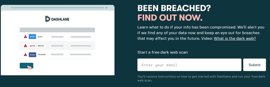 Find out if you've been compromised with a free Darkweb Scan. Image via Dashlane.com Dashlane is also unique in offering a secure VPN feature. This is an excellent addition to the service in terms of privacy, and is also helpful for those who often find themselves connected to public Wi-Fi hotspots.