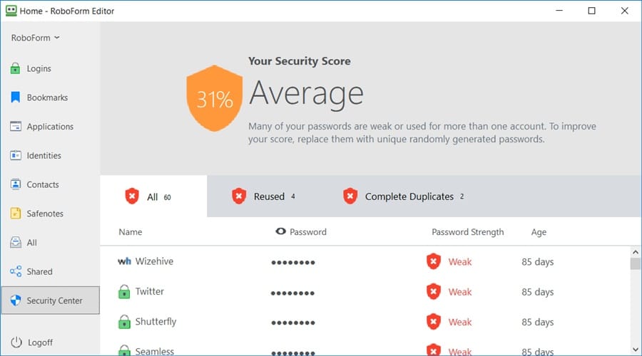 RoboForm's Security Center keeps you safe. Image via RoboForm.com Yes, you could have a modern-looking interface and all the bells and whistles from other password managers, but the simple truth is that RoboForm gets the job done.
