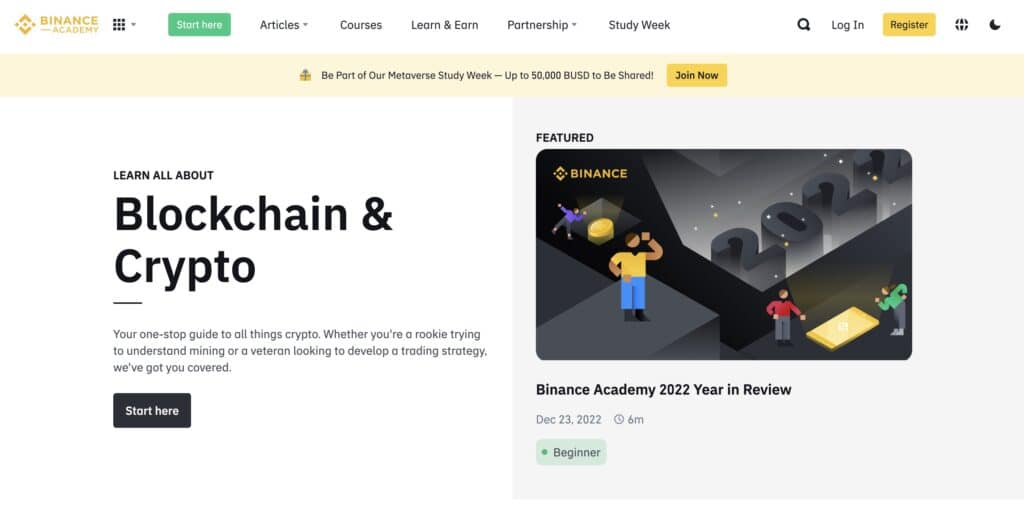 The Binance Academy is Binance’s educational platform that features hundreds of hours of content on blockchain, cryptocurrency, and how-to guides, covering topics such as how to use the Binance dex, what is blockchain?, crypto security, and plenty more, with much of the focus selflessly not even being Binance-centric.
