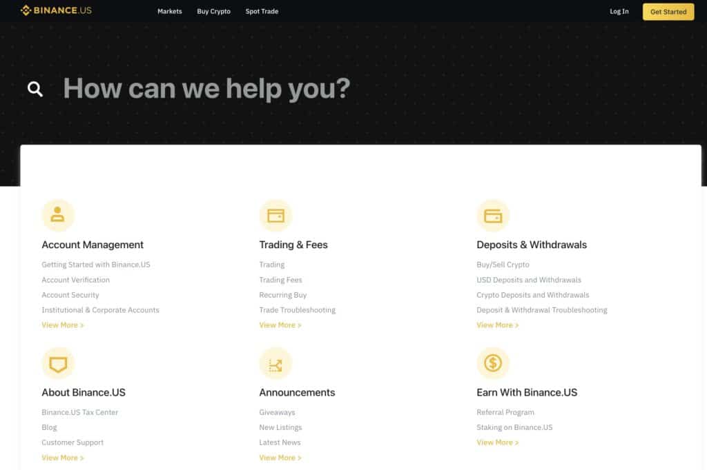 A Look at the Binance US Support SiteAnother complaint from some users is that there is no live phone support. I can’t say this is surprising, phone support isn’t offered by many exchanges, with Kraken being the exception.