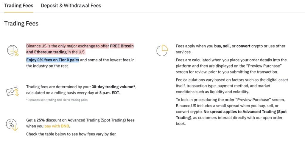 Here are a look at the fees for deposits and withdrawals on Binance US: