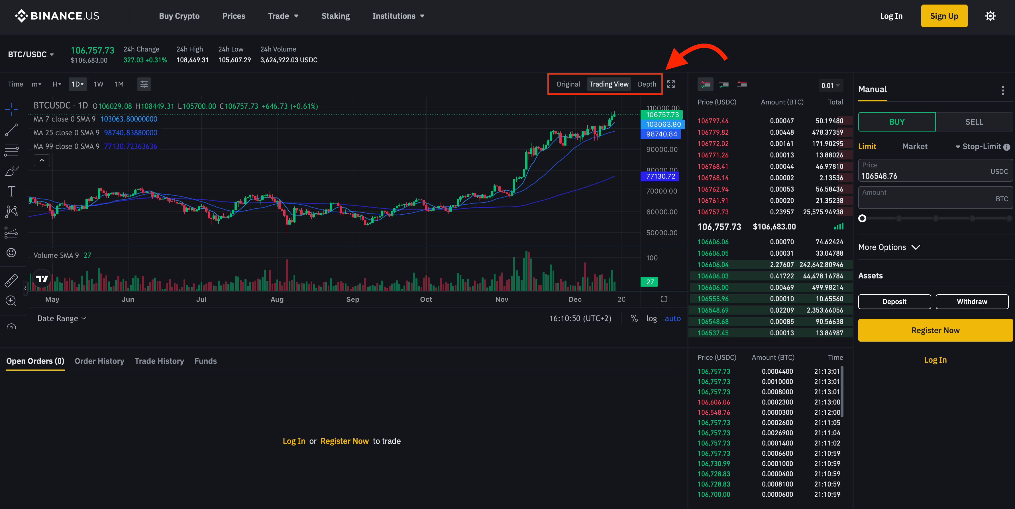 How to Switch Between Original, TradingView, and Depth Chart Views on Binance US.There is also a fantastic mobile Binance app for trading while on the road.