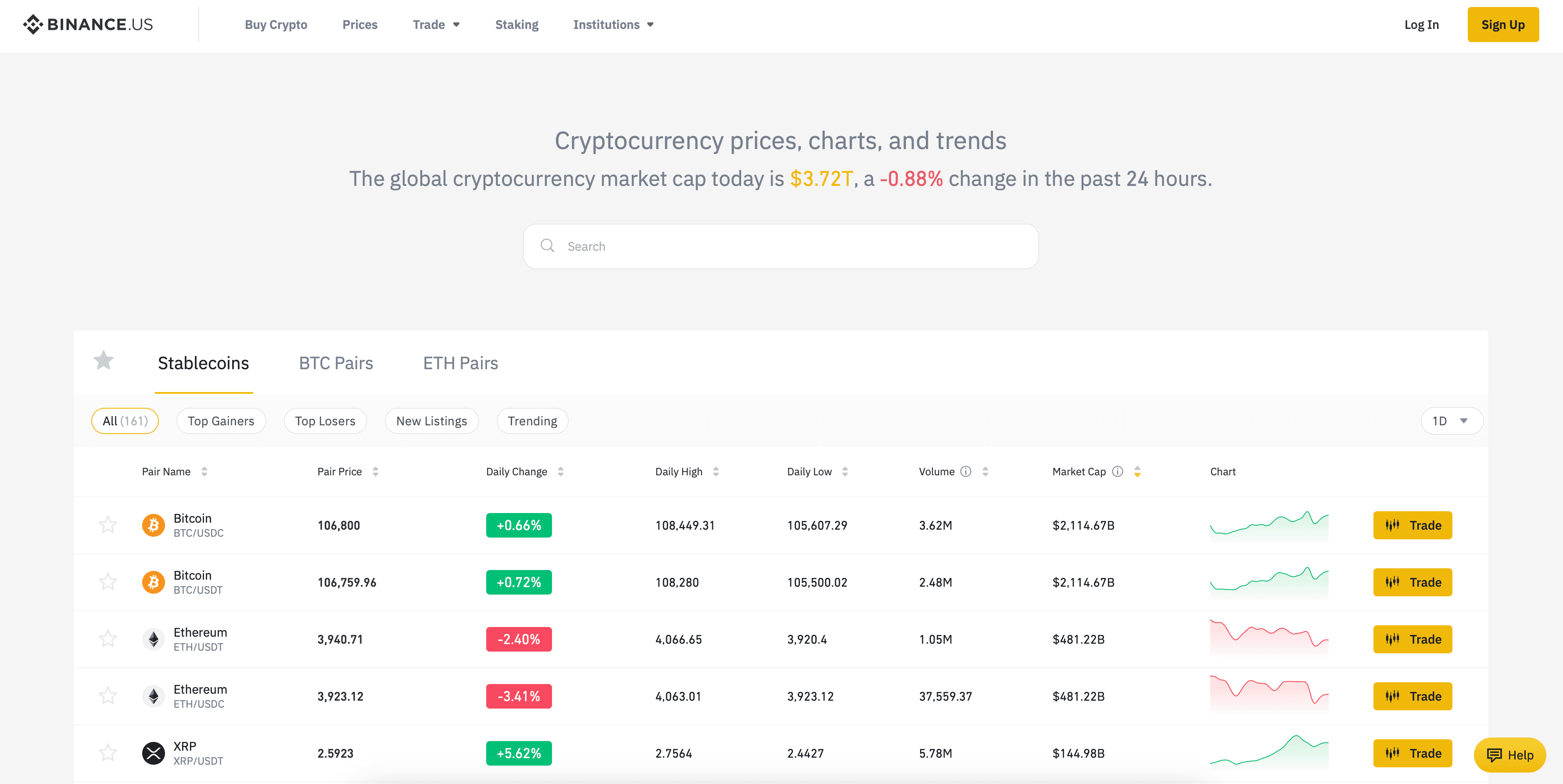 A Look at the Binance US Markets PageBinance US has deep liquidity, suitable for both retail and institutional traders, with a 24hr trading volume of over 300 million at the time of writing.