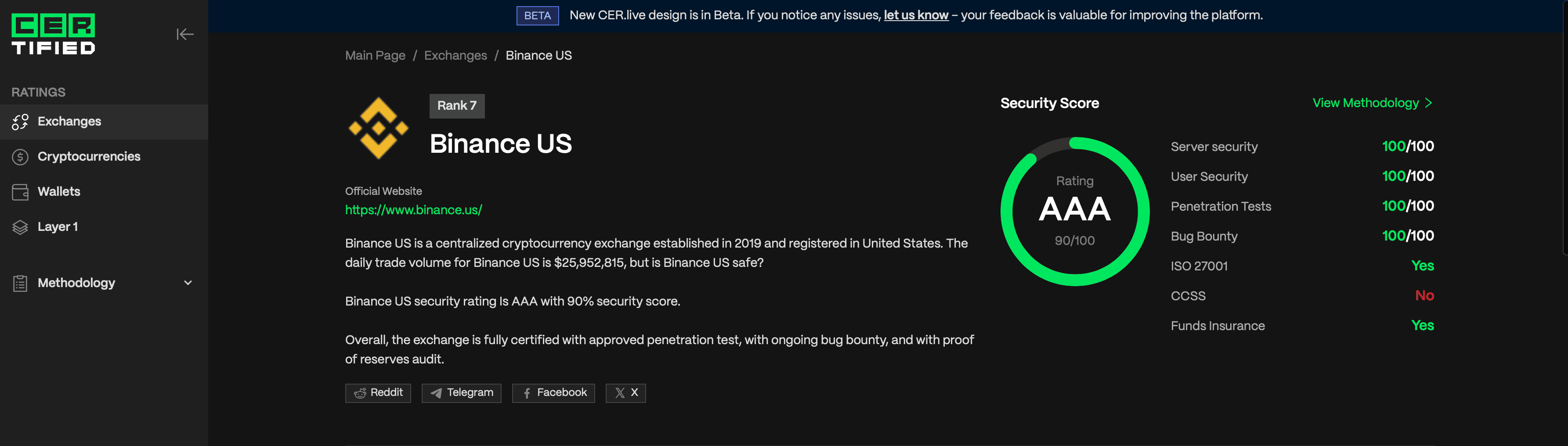 It is important to point out that the parent company Binance suffered a hack in 2019, where criminals stole more than $40 million in BTC. All customers were reimbursed and Binance has since updated its security protocols and is now one of the most secure exchanges in the world, ranking #4 on Certified, an independent security auditing firm, while Binance US ranks #7.