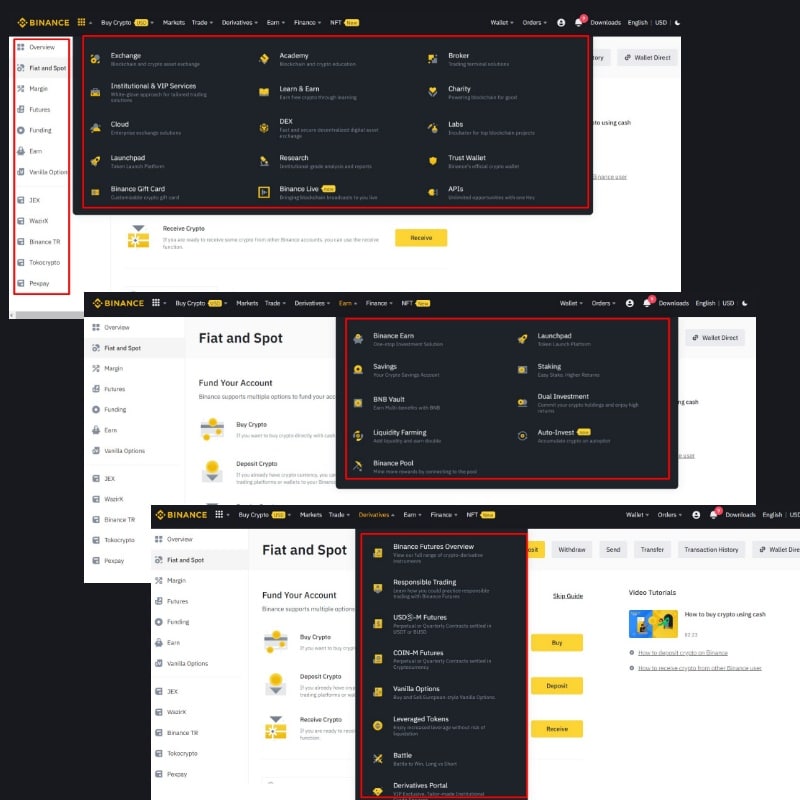 While we can't go into full detail on all the different platform products available in this article, as we do that in our dedicated Binance and Binance US review, I'll go over the core products.