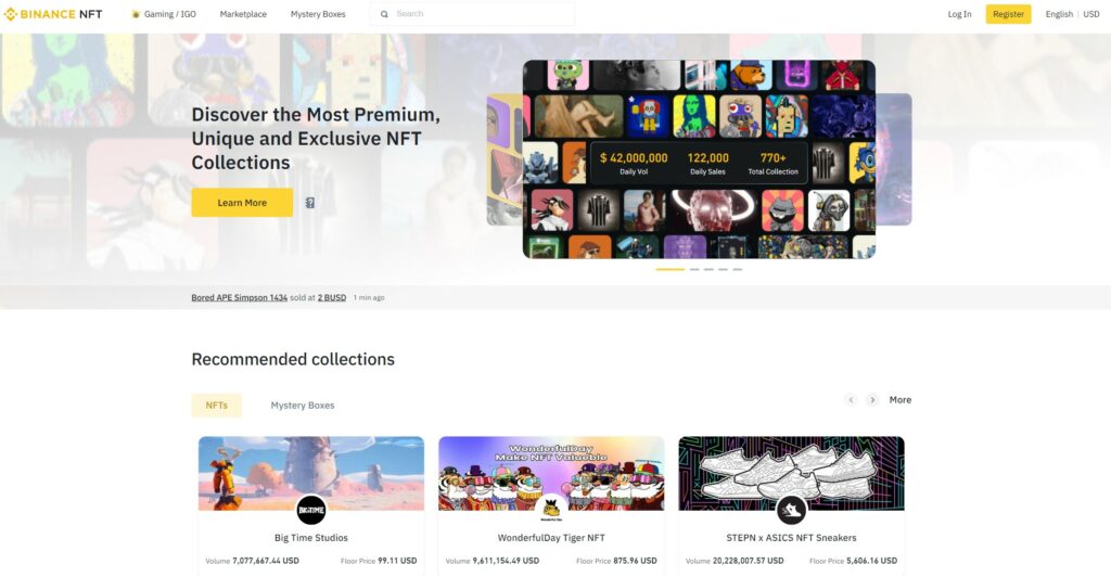 A Look at the Binance NFT MarketplaceThe Binance NFT marketplace grew rapidly in popularity as a place where users could buy, sell, and mint NFTs. Because the NFT marketplace runs on the Binance Smart Chain, Binance was able to offer a far more cost-friendly and efficient marketplace over many of the other NFT marketplaces.