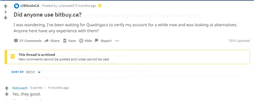 Questions about Bitbuy on Reddit. Source: /r/BitcoinCAYou also have users who found their customer service greatly helpful and others who found that their verification times in the January 2018 Bull run were some of the fastest.