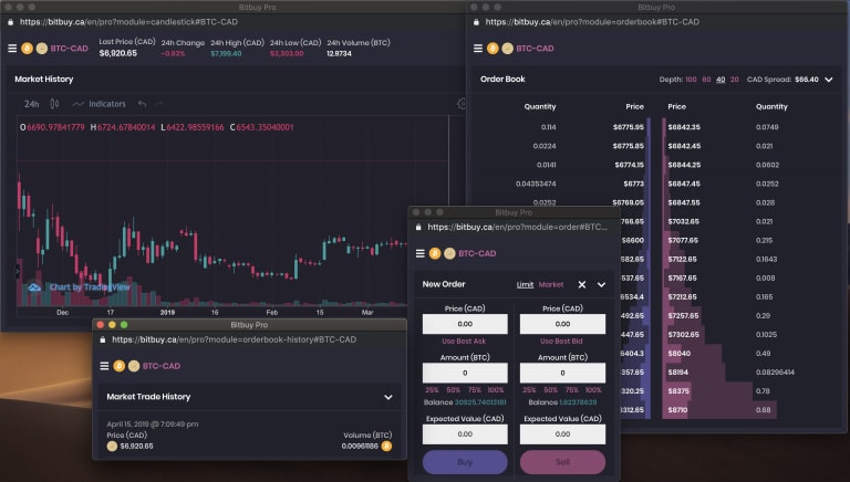 For the more advanced traders out there, you will probably want to trade on Bitbuy’s more advanced trading platform. This is more like your typical exchange with customer order books matched with an exchange “matching engine”.