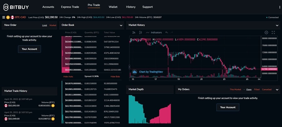 Bitbuy has two trading platforms on offer at their exchange. These are the Express Trade and the Pro Trade.