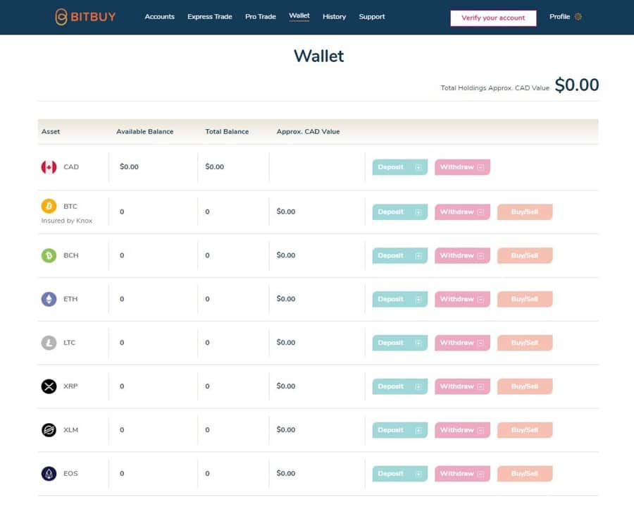 Currently, Bitbuy supports seven cryptoassets. You can buy Bitcoin, Bitcoin Cash, Litecoin, Ethereum, EOS, Stellar Lumens and Ripple.