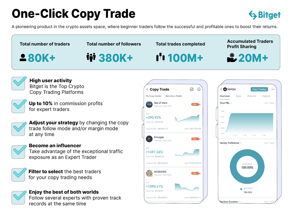 "Trade alongside the best: Follow elite traders and enhance your returns with just one click." (Source: Bitget)