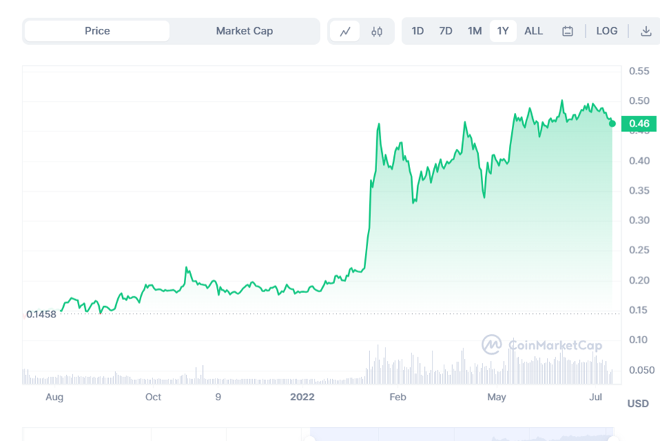 BGB launched in May 2022 at $0.1458. In early February 2023, BGB spiked from $0.21 to an all-time high of $0.5152 in a few days, and the price has not dropped below $0.33. Indeed, the BGB price has remained around $0.46 for several months, with a few minor dips.