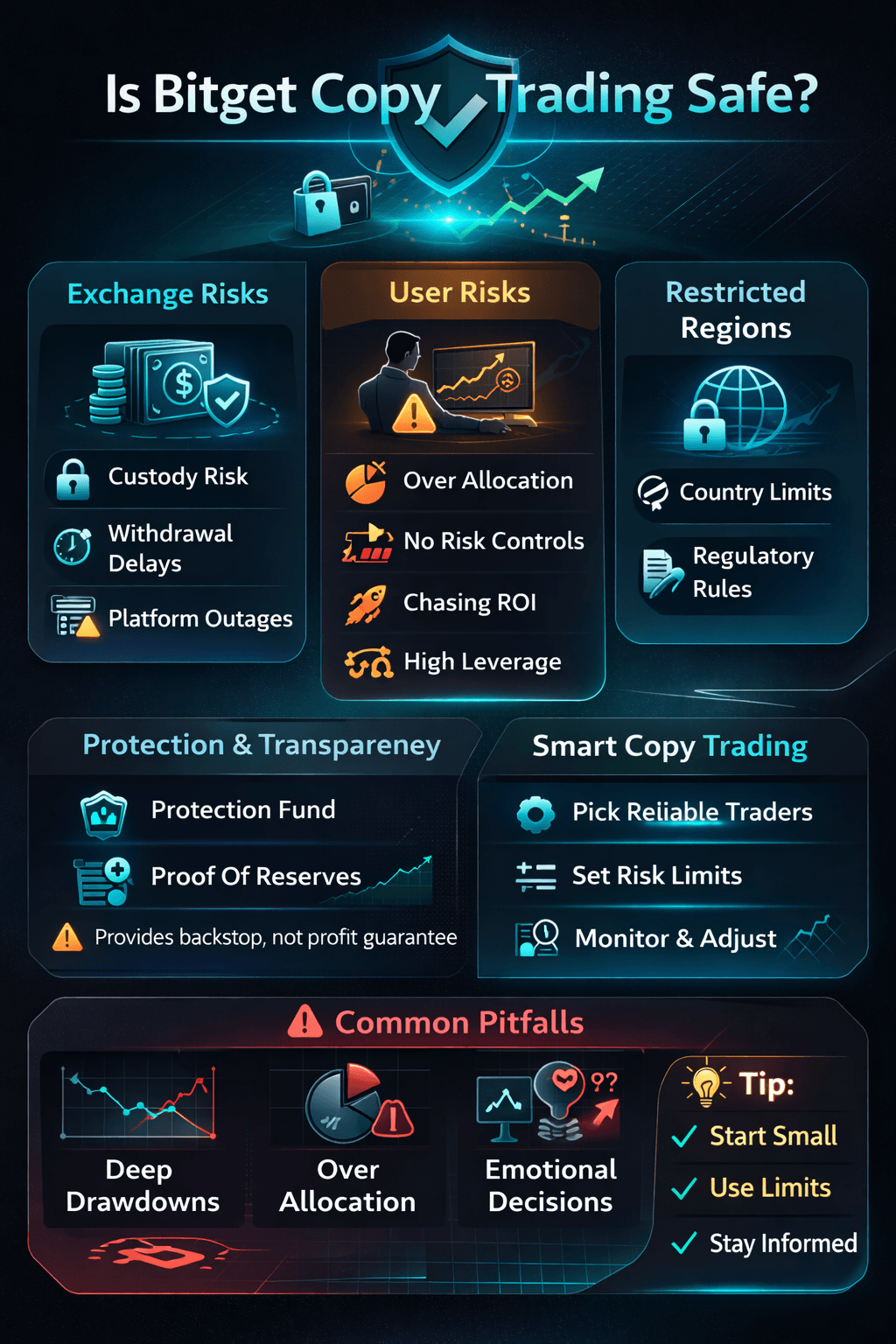 A Platform can be Resilient and Transparent, and You can still Lose Money simply because the Market Moves against the PositionsSome risks sit at the platform layer. These include custody risk, withdrawal delays, and platform outages. Tools like the Protection Fund and Proof Of Reserves mentioned earlier, can improve transparency and provide an additional backstop for certain incidents, but they do not eliminate trading losses, and they do not guarantee you will avoid disruption during extreme market events. Proof of reserves also has limits, which is why Bitget publishes a self verification approach using Merkle tree tooling, as mentioned above, rather than presenting it as a full financial audit.