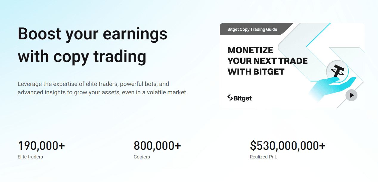 | Total copy trades | 100 million+ (since late 2020) — Bitget has stated the platform has completed at least 100 million trades since the inception of One-Click Copy Trade. |