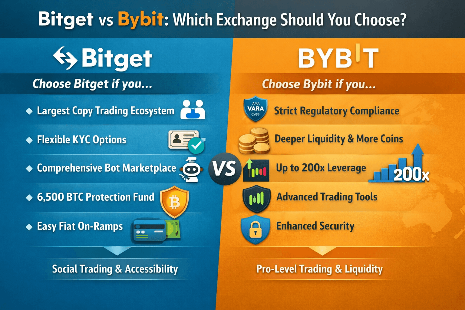 The choice between Bitget and Bybit depends on your specific trading style, experience level, and priorities. Bitget is generally more suited for traders who prioritize social features, ease of use, and integrated automation, while Bybit caters to more experienced traders seeking high-performance tools, deep liquidity, and regulatory assurance.