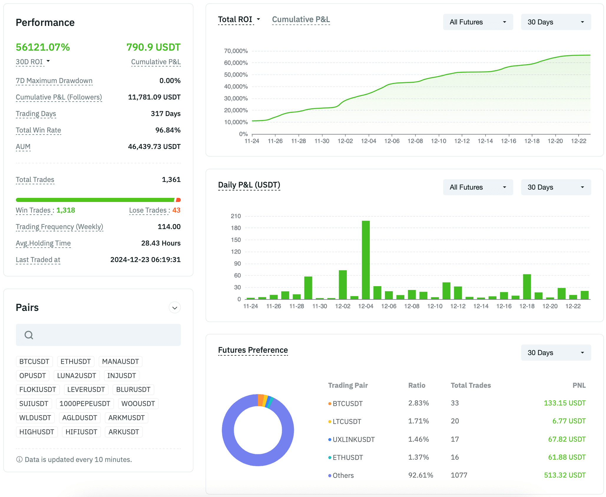 Metrics Displaying Master Trader Performance. Image via BitMartIt’s important to note that even professional traders can incur losses, and these losses are directly reflected in the accounts of their Copiers. While Copy Trading simplifies the trading process, Copiers should carefully assess the risks involved and select Pro Traders whose strategies align with their own risk tolerance and investment goals.
