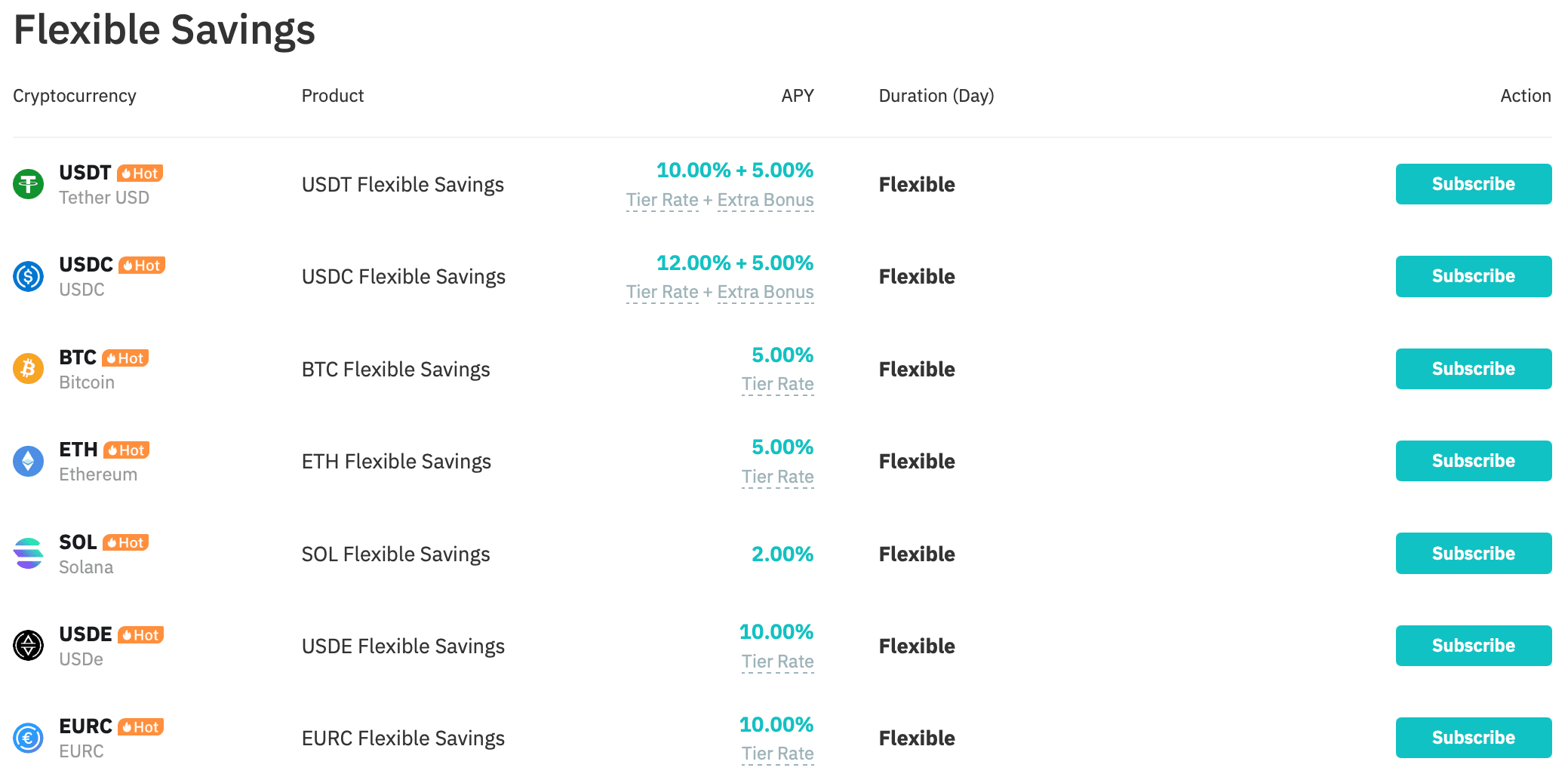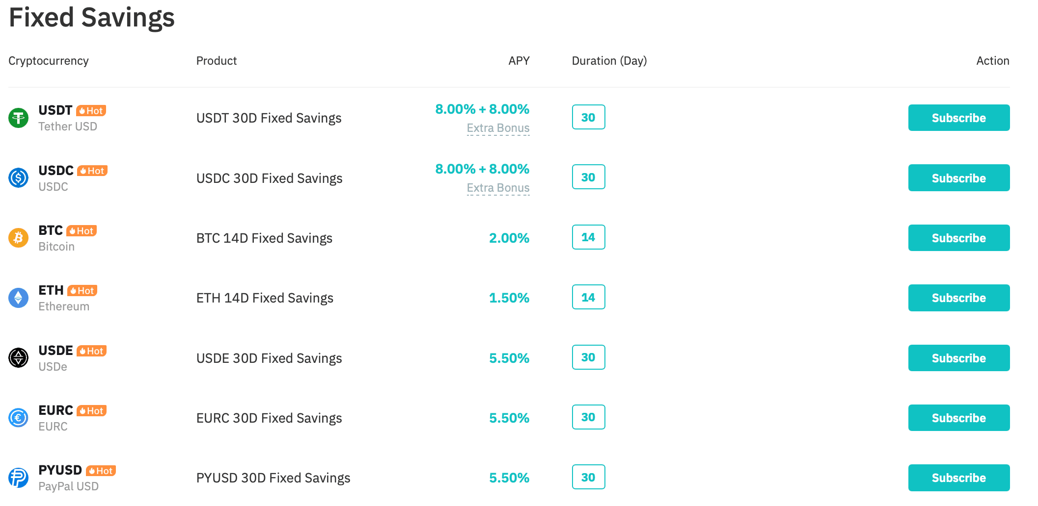 For those willing to lock their funds for a set period, Fixed Savings offers higher returns compared to Flexible Savings. This product is designed for users with a longer-term investment perspective.
