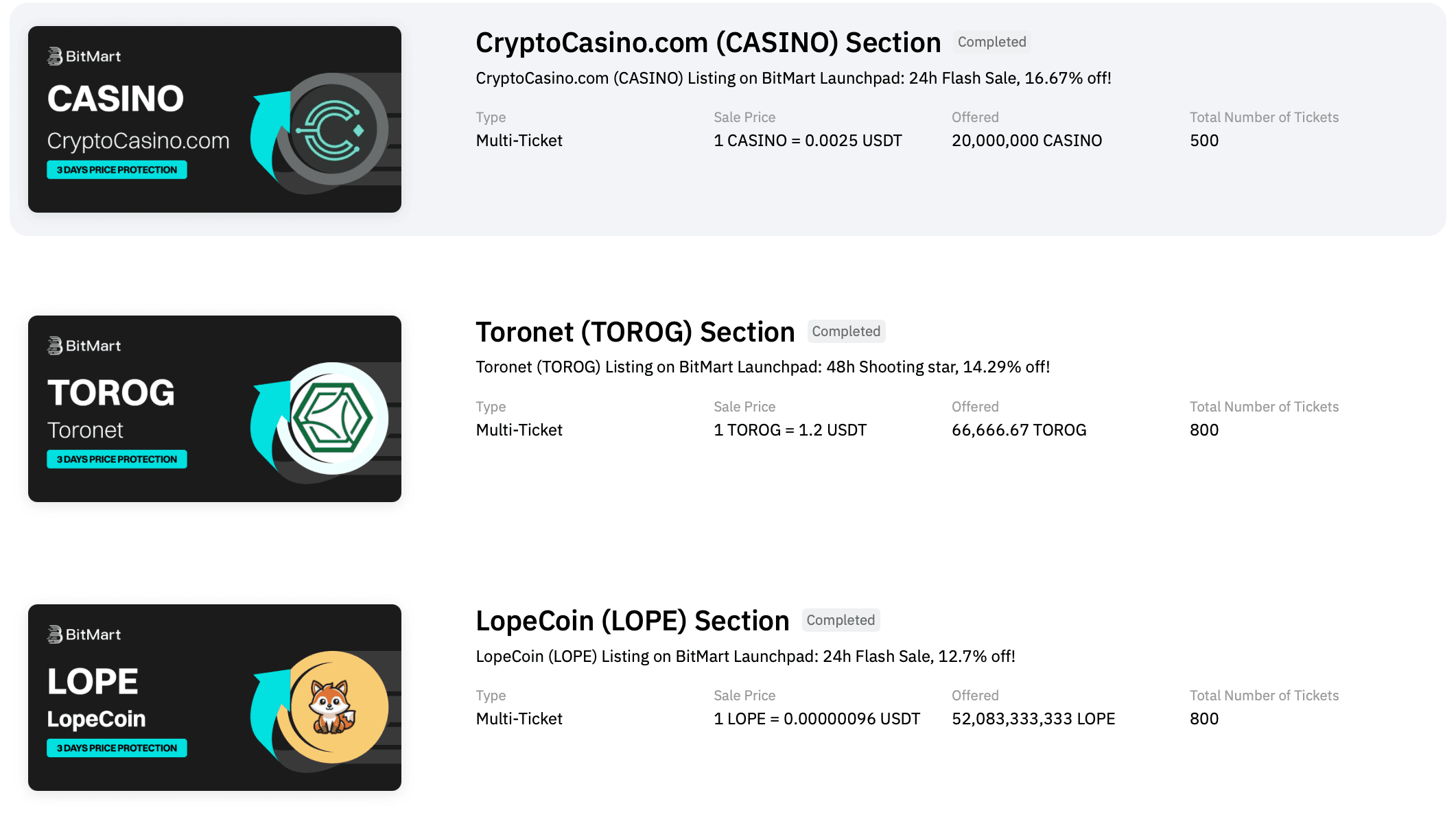 A Look at Some of the Token Sales on Shooting Star. Image via BitMartFlash Sale