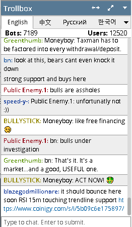 The BitMEX "Trollbox"Something else that BitMEX has that is being offered by a great deal of FX platforms these days is the group chat options.