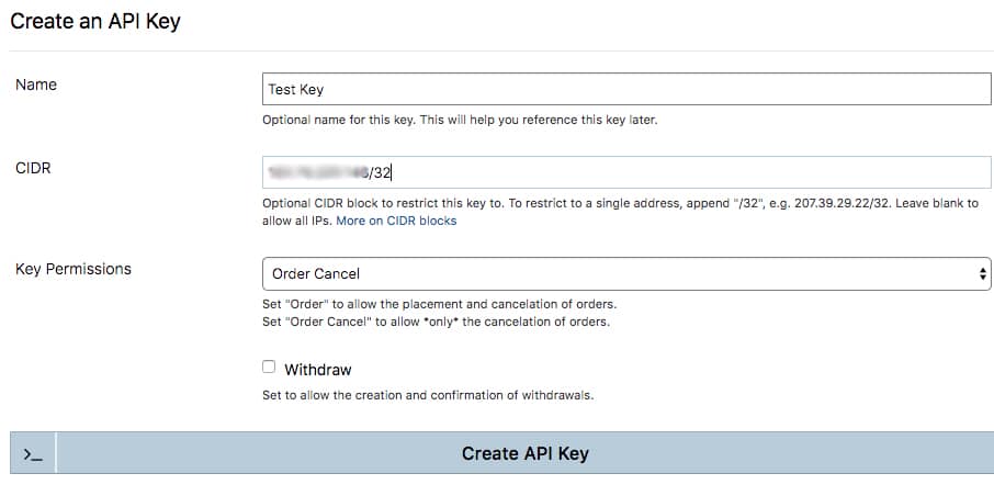 Once complete, you can hit the "Create API Key" button and a key will be generated for you. You can now stream account-specific information through the websocket connection. However, you cannot place any orders through the websocket. This is where BitMEX's REST API comes into play.