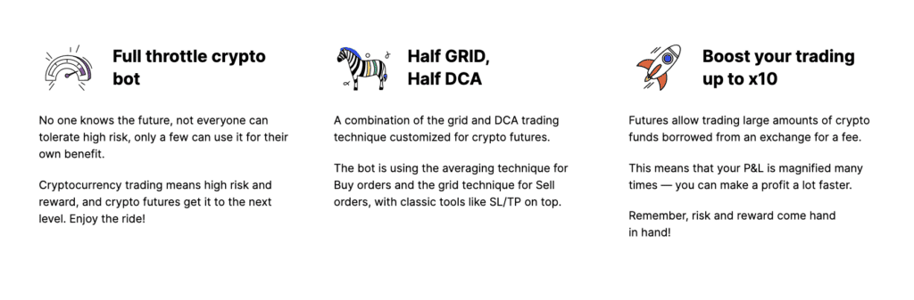 The bots can be set to trade with leverage from 1x to 10x, allowing users to trade funds 10x larger than their investment.
