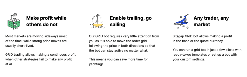 Bitsgap offers three different types of trading bots.