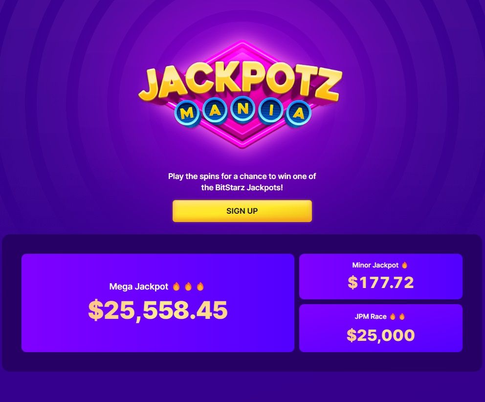 Jackpotz Mania provides players with a daily opportunity to win two progressive jackpots and compete for additional monthly prizes. Opening an account with BitStarz grants automatic free access to Jackpotz Mania, allowing players to participate without any cost.
